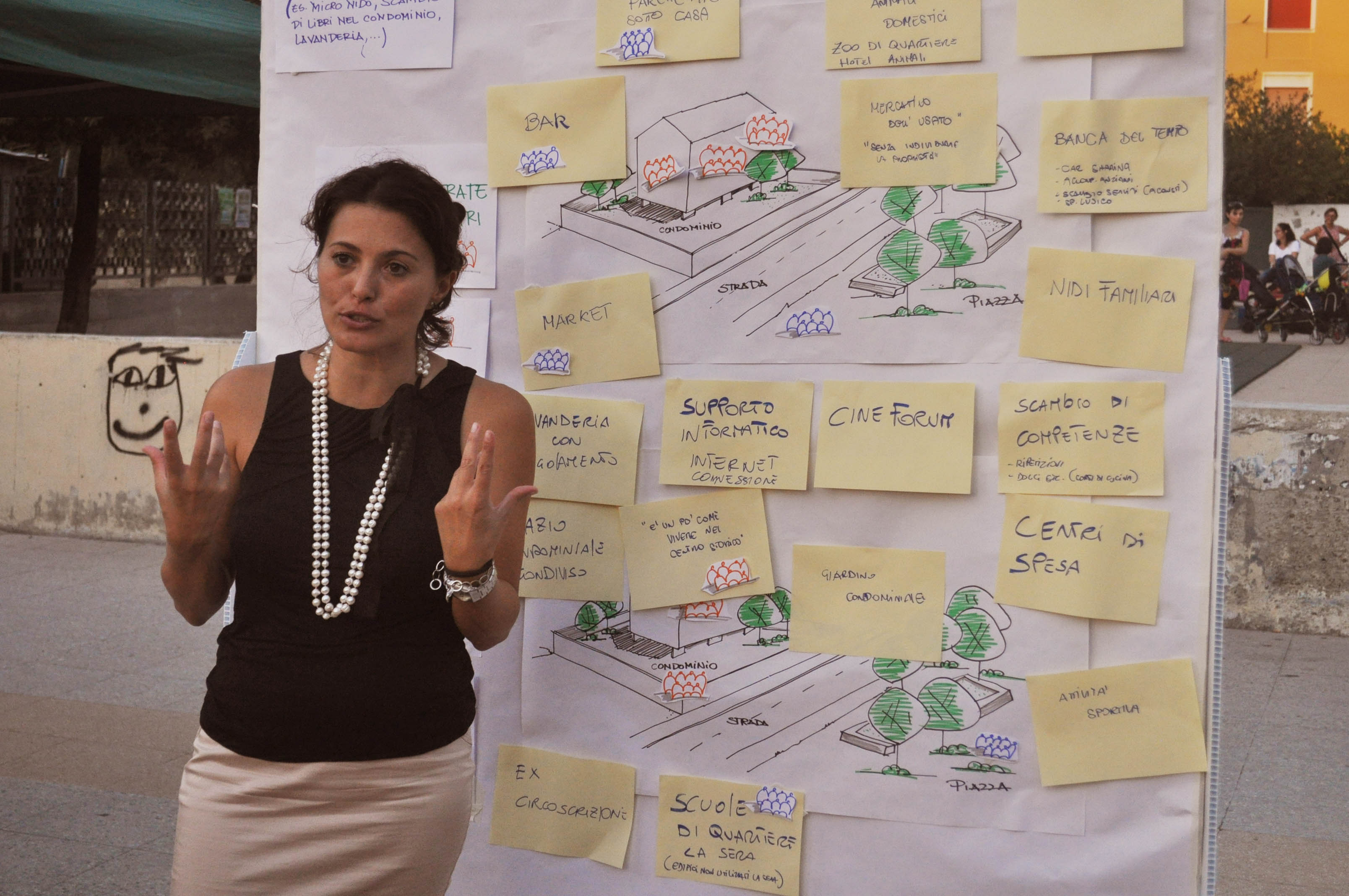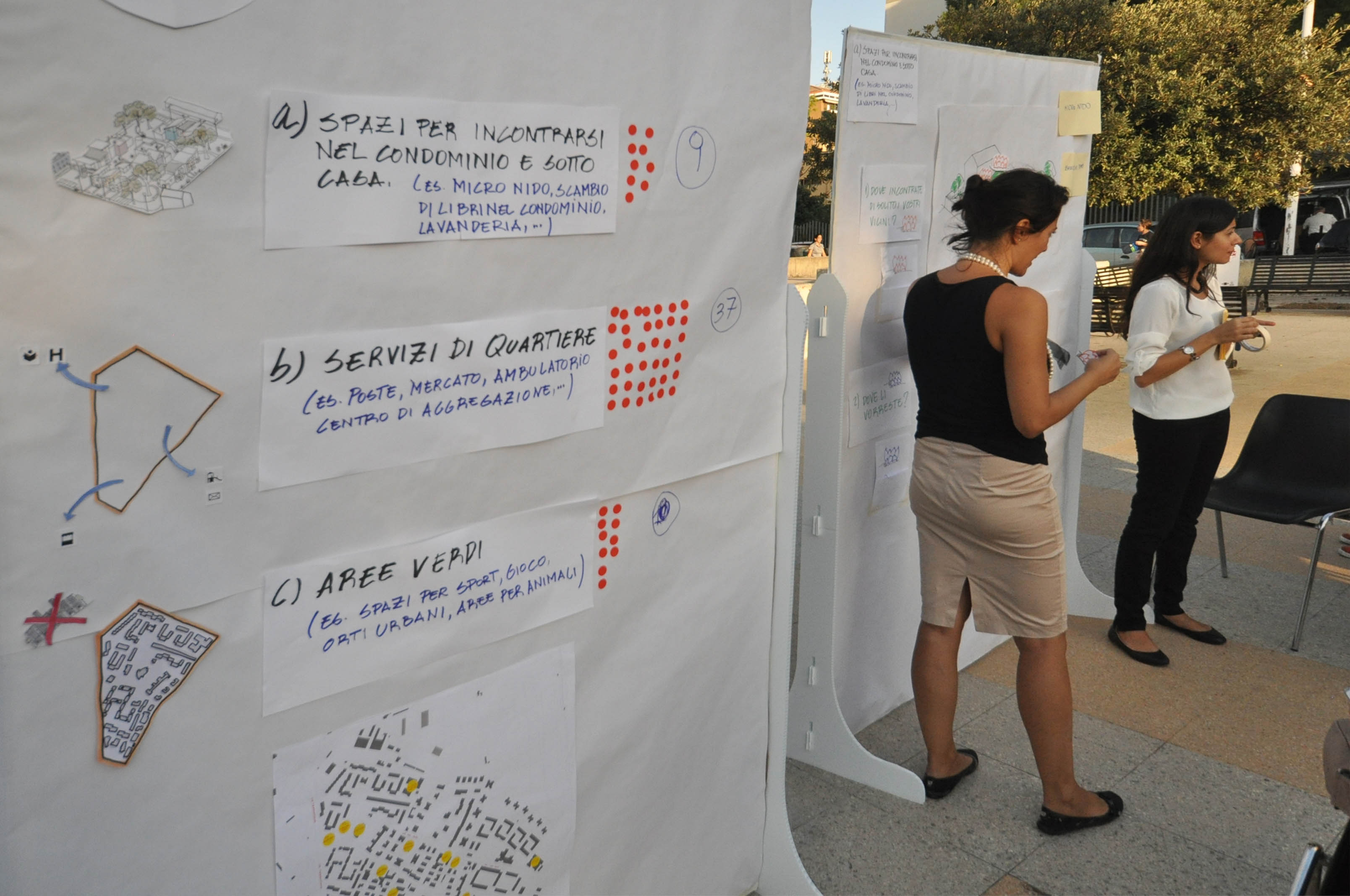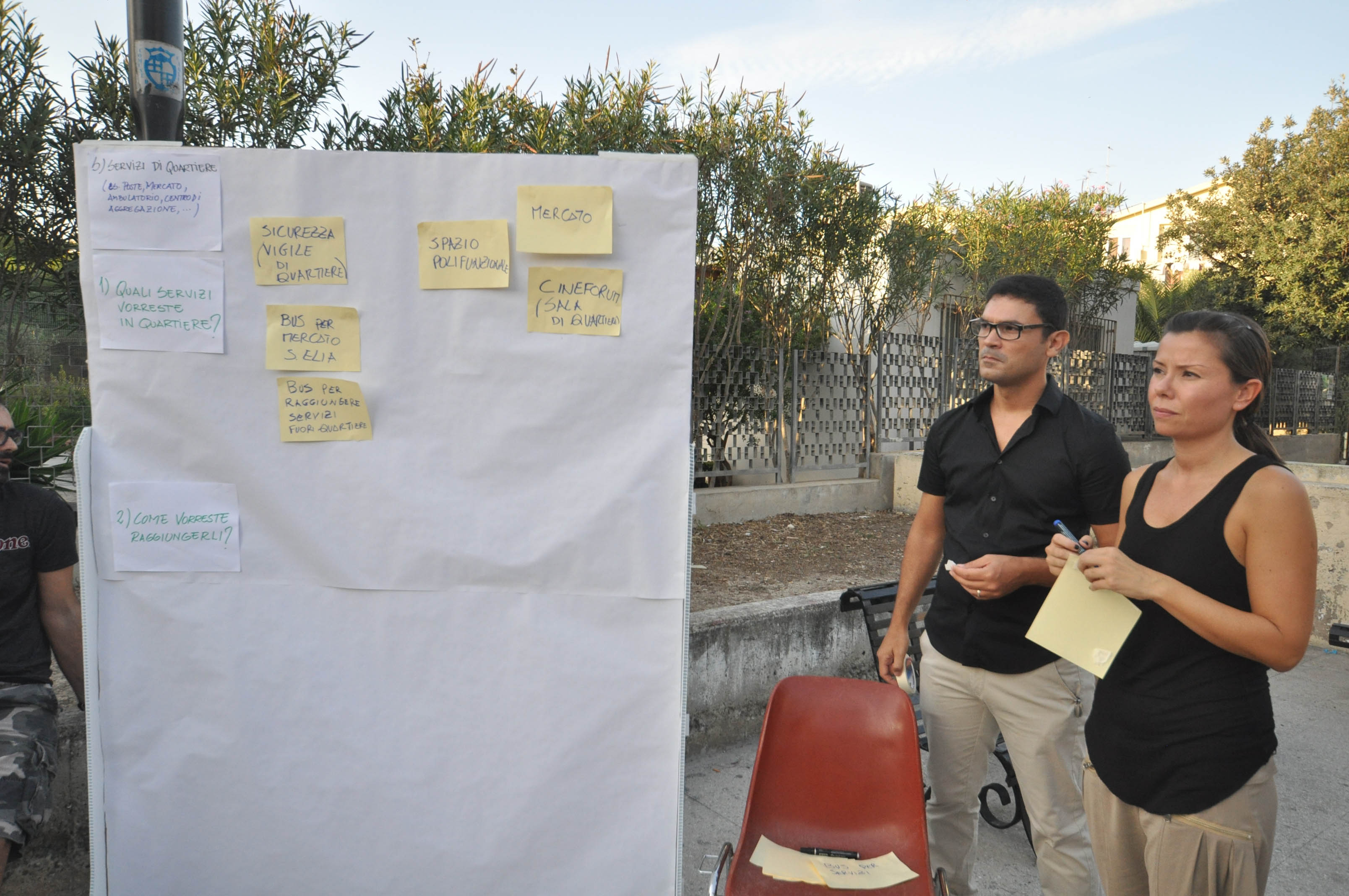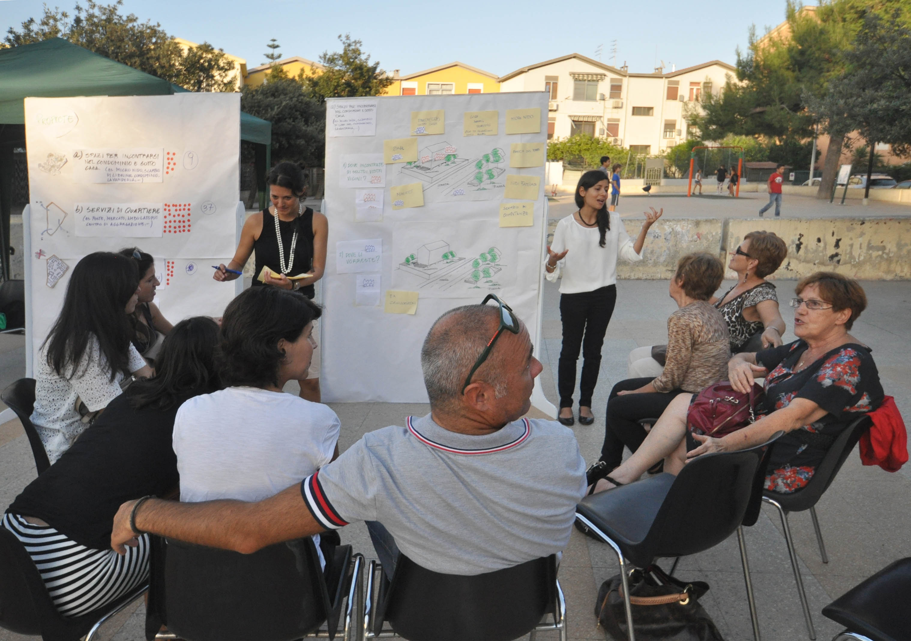 Le persone hanno lavorato su un’idea che parte da questo progetto di Federica Sedda (tesi di laurea in Architettura il cui relatore era Luca Sanna e controrelatori Elisabetta Pani e Romina Marvaldi della SoHousing Wix) con l’intento di creare le condizioni per la partecipazione attraverso un profondo coinvolgimento delle persone del quartiere. A questa idea hanno lavorato e lavorano a diverso titolo persone del quartiere e dintorni come Enzo Strazzera, Marinella Boi, ma anche amici ed esperti come Donatella Carta, Giulia Casula, Matteo Lecis Cocco Ortu, Simone Langiu, Alessandra Piscedda, Paola Porcu, (anche tanti altri) tutti orientati ad avviare la partecipazione partendo dai tre temi chiave emersi dalla tesi e poi sviluppati durante l’evento e quindi condivisi con il quartiere: