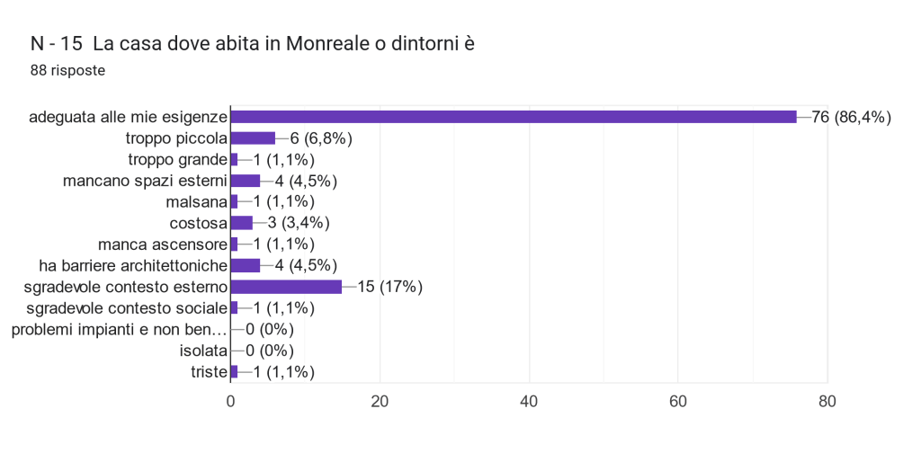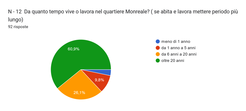 Essendo una fase preliminare, quindi senza dati completi resi disponibili dalle amministrazioni locali (e quindi senza poter contare su un campione significativo), ci siamo accontentati di raccogliere informazioni sulle persone e sui loro orientamenti. Alcuni sono stati utili per conoscere il profilo di chi ha risposto e poter caratterizzare le risposte. Abbiamo intercettato nel giro di pochissimo tempo informazioni di alcune fasce d’età, esplorando il rapporto con il quartiere, lo stato civile, la struttura del nucleo familiare, il tipo di lavoro e relativa sede, la via dove si risiede, da quanto tempo, le caratteristiche oggettive e soggettive dell’abitazione.