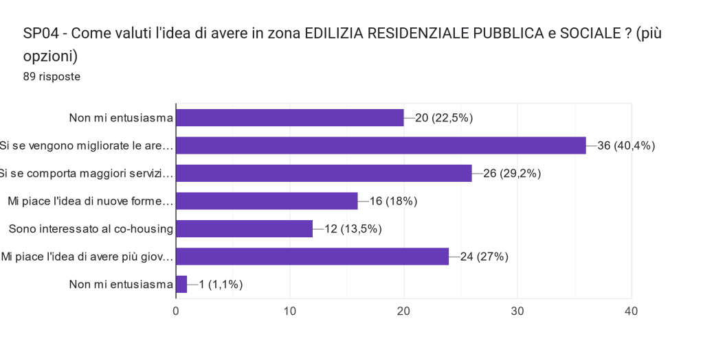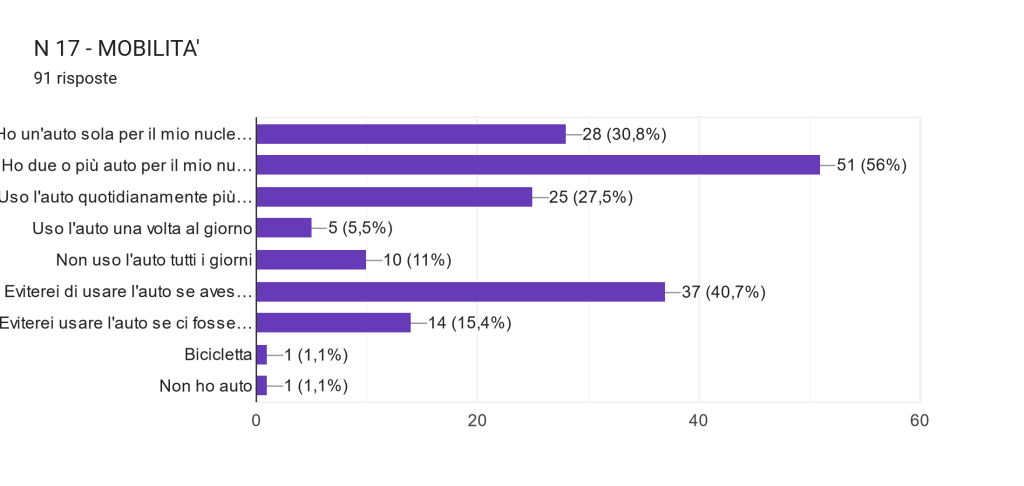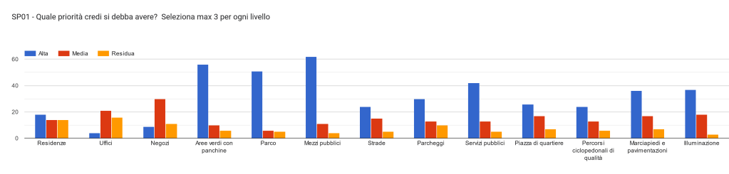 Abbiamo voluto esplorare anche il tema della mobilità, della qualità urbana e del paesaggio. Per completare una prima parte non troppo lunga abbiamo anche chiesto una valutazione sulle proprie aspettative e priorità. Cosa vorresti che cambiasse, ma soprattutto cosa saresti disposto ad accettare pur di avere alcuni cambiamenti?