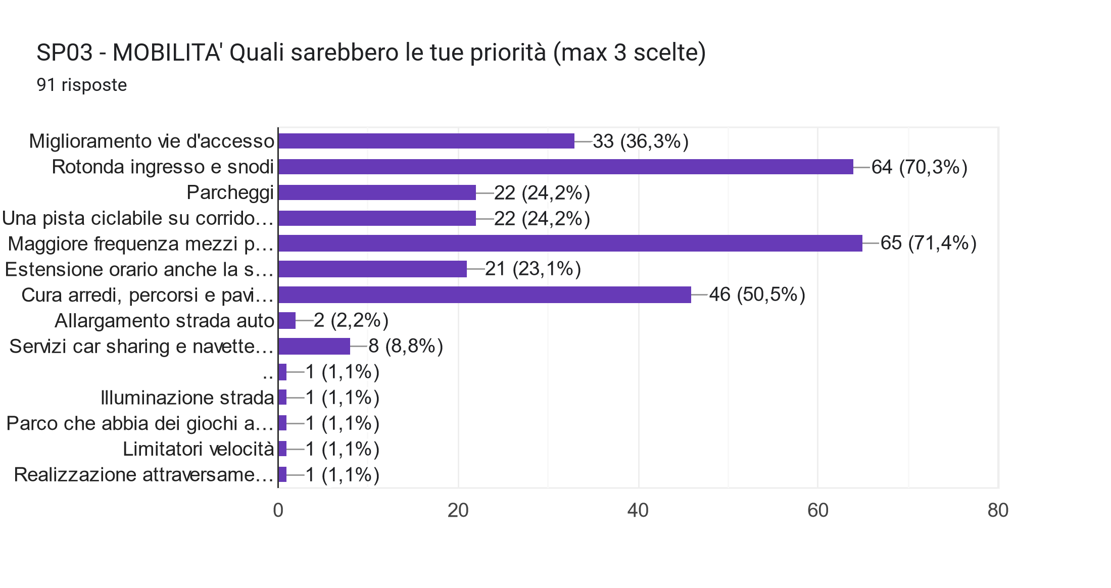 Abbiamo voluto esplorare anche il tema della mobilità, della qualità urbana e del paesaggio. Per completare una prima parte non troppo lunga abbiamo anche chiesto una valutazione sulle proprie aspettative e priorità. Cosa vorresti che cambiasse, ma soprattutto cosa saresti disposto ad accettare pur di avere alcuni cambiamenti?